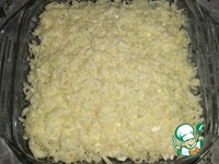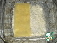 Повторить операцию. Снова начинку - листы лазаньи - соус. Сверху посыпать натёртой на крупной тёрке моцареллой. (У нас оставалось 150 г.) |