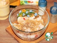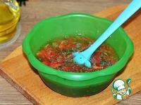 14. Добавляем очищенный и прессованный чеснок, измельченную зелень, молотый кориандр и перемешиваем. |