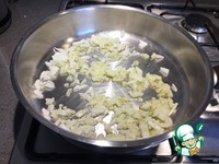 В сотейник наливаем оливковое масло для жарки. Добавляем туда лук и жарим его до румяности. |