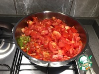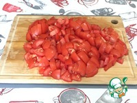 Затем нарезаем помидоры кубиком. |