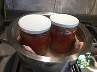 Выкладываем полученную массу в стрелизованные баночки. Для стерилизации я кладу их в духовку вместе с крышками на 20 минут при температуре 150 градусов, |