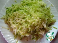 Кабачок натереть на крупной стороне терки. Дать постоять 5-7 минут. |