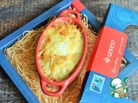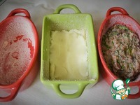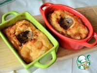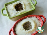 Порционные (250-300 мл.) огнеупорные формы смазать сливочным маслом, присыпать сухарями. На дно разместить 2 ст. л. пюре, на него 3 ст. л. фарша. |