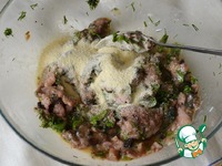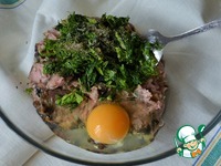 В миске смешать фарш индейки (курицы), рубленную зелень и шампиньоны, яйцо. Посолить и поперчить. |