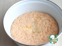 Далее добавить 1 яйцо, 1 ч. ложку соли, растопленное сливочное масло (1 ст. ложка) и 1 ст. ложку растительного масла. Смесь перемешать. Далее добавить остальную муку. Муки, возможно потребуется чуть больше, мука бывает разная. НО! Слишком много муки добавлять не следует, чтобы не забивать тесто. Емкость с тестом затянуть пищевой пленкой и поставить в теплое место для подъема. После первого подъема тесто обмять и поставить подниматься вторично.