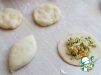 Яйца (3 шт.) отварить, порубить в мелкую крошку, зеленый лук нарезать мелко. На сковороду добавить 2 ст. ложки топленого сливочного масла и слегка припустить зеленый лук. Рис (3 ст. ложки) отварить до состояния Al dente, затем промыть в холодной воде. Соединить припущенный в сливочном масле зеленый лук, отварной рис и порубленные в крошку отварные яйца. Добавить по вкусу соль. Смесь перемешать. Далее приступить к формовке пирожков. |