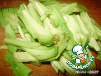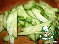 Огурец нарезать соломкой. Орешки кедровые слегка обжарить на сухой сковороде до золотистого цвета. |