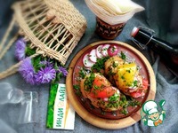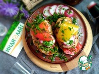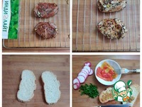 Выложила медальоны на решётку и поставила в духовку под гриль при Т-200 С на 15 минут. В конце приготовления, на эту же решётку положила 2 куска пшеничного батона подсушиться буквально на пару минут. Взяла всё то, что мне пригодится для приготовления тостов. Вы можете взять любые вами любимые продукты. Я буду использовать перец маринованный (закуска), редис и петрушку. Горчицей хлеб нужно подмазать, я подмажу дижонской, которую можно заменить на любую столовую. Перец болгарский закусочный отлично дополнит тост. Если кому интересен рецепт как я делаю этот перец, я ниже дам ссылку. Редис нарезаем тонко, петрушку мелко порубим. |