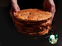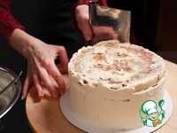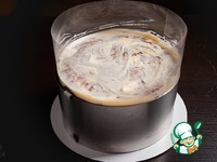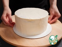 Собранный торт обернуть ацетатной пленкой, зажать кольцом и отправить в холодильник на ночь. Верх накрыть пленкой, чтобы не высох. |