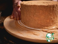 Крошки с подложки снова загоняем по торту на этот раз вверх. Как будто красим торт. |
