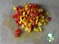 Перец чистим, режем кубиками, жгучий перец колечками. Я для красоты взяла жёлтый и красный перец. |