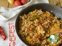 Описание: Даже и не знаю, как правильно назвать это блюдо. По технологии приготовления похоже на "Ленивые голубцы", только вместо капусты болгарский перец. Можно сказать, что это овощное рагу с фаршем и рисом. Но как не назови, это вкусно, красиво, полезно, ароматно, прекрасно подойдёт для семейного обеда-ужина.