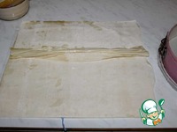 Берем 2 листа теста фило и обильно смазываем сливочным маслом. |