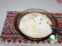 Добавляем молоко и хорошо перемешиваем венчиком. Добавляем творожный сыр. |