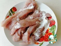 Стейки необходимо нарезать вдоль палочками толщиной около 1,5 см |