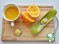 Для глазури измельчить чеснок и имбирь. Выжать из апельсинов сок. |