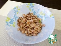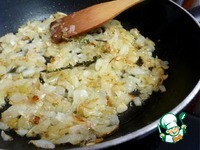 Большую луковицу нарезать и обжарить на смеси сливочного и растительного масел. Для ароматата в сковороду я положила веточку тимьяна. Лука не жалейте, будет только вкуснее! |