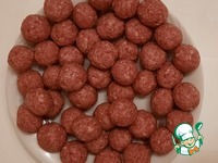 К фаршу добавить 2 столовые ложки манки, по щепотке соли, перца и муската от общего количества. Скатать небольшие фрикадельки. |
