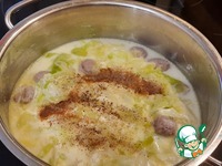 Добавить соль, перец и мускат. С солью будьте осторожны, сыр солёный. Попробовать на вкус и выключить. Суп готов! |