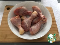 Куриные голени поливаем оливковым маслом. Сверху добавляем соевый соус. Солим по вкусу. Перчим. Добавляем мяту. Хорошо перемешиваем. Накрываем крышкой и оставляем на 30 минут. |