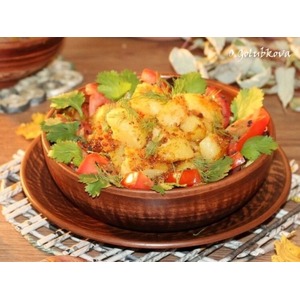 Описание: Очень аппетитный, сытный и пряный овощной салат с чесночным, остреньким и сухарным картофелем.