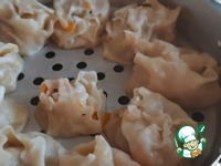 На середину каждого квадрата кладем по столовой ложке начинки. И лепим наши манты. |