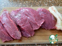 Духовку включить на разогрев. Приготовить фарш. Мякоть говядины и куриный жир, 1/3 луковицы пропустить через мелкую решётку мясорубки. Посолить, смешать. |