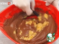 В тесто добавляю банановую массу и аккуратно перемешиваю. |