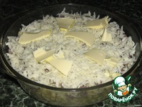 Засыпать тертым сыром, сверху положить кусочки сливочного масла. |