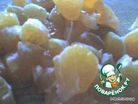 Добавить мандарины в сотейник. Перемещать. Отдельно обжарить лук на сливочном масле и добавить в сотейник. Добавить сметану. И тушить еще 10миут. Приправить солью, перцем. |