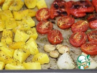 Посыпать овощи смесью прованских трав, приправить по вкусу солью и перцем, сбрызнуть оливковым маслом. |