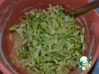 Добавить цуккини, натертый на крупной терке (не отжимать). Перемешать. |