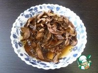 Сухие лесные грибы замочить в теплой воде. У меня сухие подосиновики, моховики и немного белых. Для правильно высушенных грибов нужно 20-30 минут. |