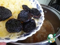 Положить в кастрюлю картофельное пюре и целые черносливины. Перемешать до однородности. |