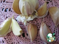 Очистить чеснок, большие зубки разрезать пополам вдоль, средние и мелкие можно оставить целиком. |
