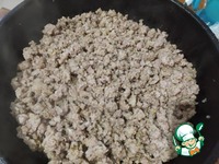 Фарш обжарить на сковороде с 1 луковицей, с добавлением специй и соли. |