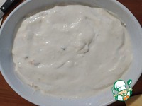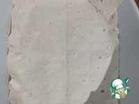 Уложите лаваш так, чтобы его края закрыли бока формы. |