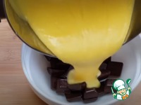 Горячую заварную основу залить к шоколаду и перемешать до однородного состояния, остудить до комнатной температуры. |