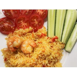 Жареный рис с креветками