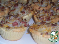 а если такие как у меня то,распределить тесто по формочке,картофель очистить,натереть,посолить,поперчить,добавить порезаную ветчину,белок,перемешать,наполнить тарталетки.