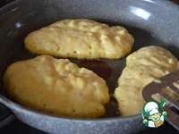 Лопаткой перевернуть, накрыть крышкой, жарить ещё 2 минуты, огонь ниже среднего. Горячие выкладывать на блюдо. Для жарки следующих вновь налить и нагреть масло, таким образом пожарить все оладьи. |