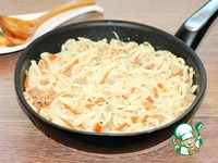 15. Приготовленный соус смешиваем с лапшой и на медленном огне под крышкой доводим лапшу до готовности, минут 5. |