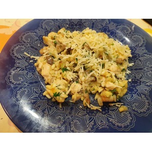 Описание: Прежде чем опубликовать рецепт, я честно просмотрела все 25 страниц с рецептами, где фигурирует слово "ризотто". Была почти уверена, что кто-то выкладывал до меня неизменную классику итальянского блюда, однако среди множества рецептов своего или близко похожего не нашла, так что с чистой совестью публикую быть может даже скучный по сравнению с теми, что есть на сайте, зато доступный и о-очень вкусный рецепт ризотто с курицей и грибами.