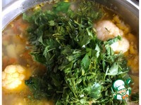 Зелень мелко нашинковать и добавить к супу. Дать супу закипеть и отключить. |