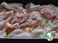 Выложить курицу. Слегка полить сметанной смесью. |
