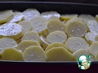 Картофель нарезать кольцами. Посолить. |