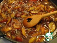 Сливы нарезать на дольки, добавить сахар. На сковороде карамелизовать сливы. |