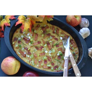 Картофельную массу выложить в смазанную подсолнечным маслом форму, посыпать нарезанной бужениной или ветчиной. Запекать в разогретой духовке при 180гр 35-40 минут или до готовности. |