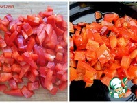 Перец нарезать кубиками и пожарить, на оставшемся растительном масле. |