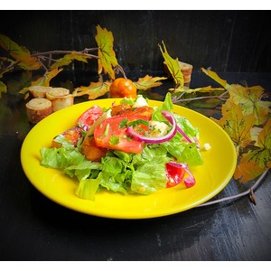 Описание: Невероятно вкусный, гармоничный салат с овощами и жареным сыром. Яркий, ароматный с тонкой пряной ноткой и кавказским характером! Угощайтесь!